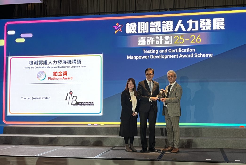 The “Testing and Certification Manpower Development Award Scheme” is an award established by the Hong Kong Council for Testing and Certification (HKCTC) an organization advises the Government on the overall development strategy of the testing and certification industry. The judging criteria for the Corporate Award are based on “4C” attributes, namely Commitment, Competence, Care and Communication, with a focus on manpower development.